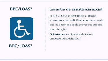 Aposentadorias, revisões, benefícios por incapacidade, BPC/LOAS e planejamento previdenciário.